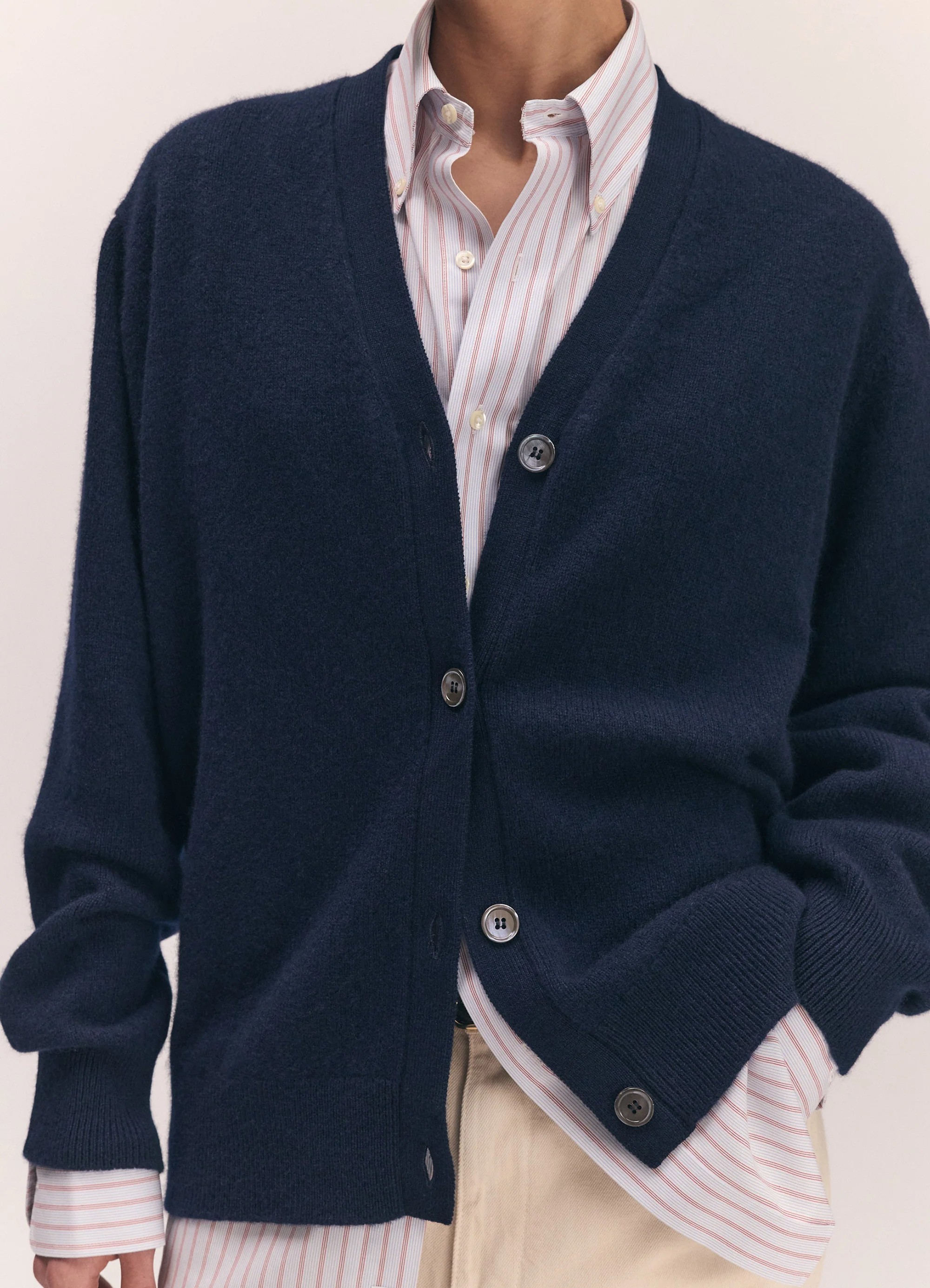 Introducing the Ava Cardigan in Navy, knit in super soft, Scottish-spun Geelong lambswool. Its silhouette is neither slim, nor oversized, and has a subtle slouch for ease of layering with an elegant drape.