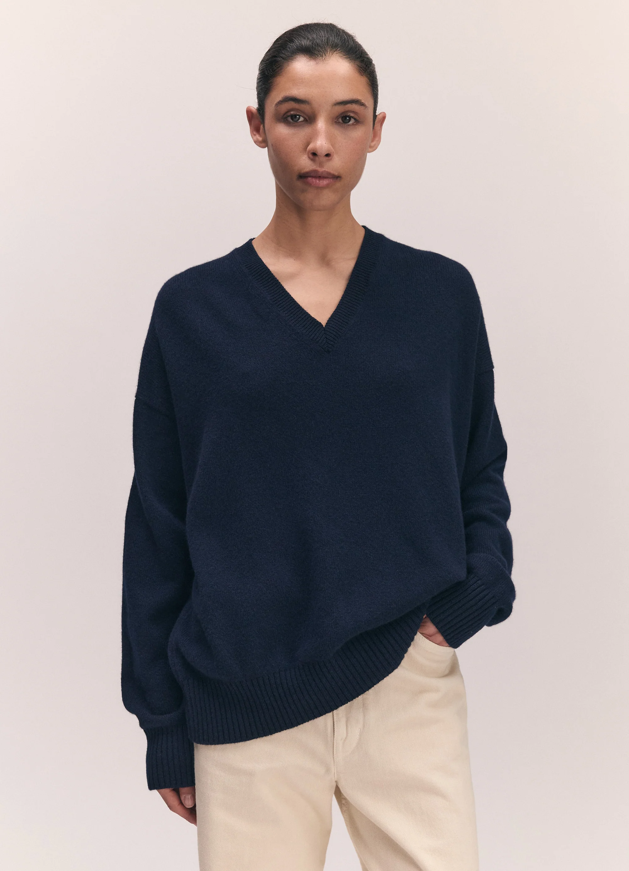 Knitted in a mid-weight 7-gauge lambswool, designed for an oversized fit with a slouchy, easy drape designed for everyday wear. Finished with a clean V-neckline and ribbed trims, itās a versatile piece that layers effortlessly or stands alone.
