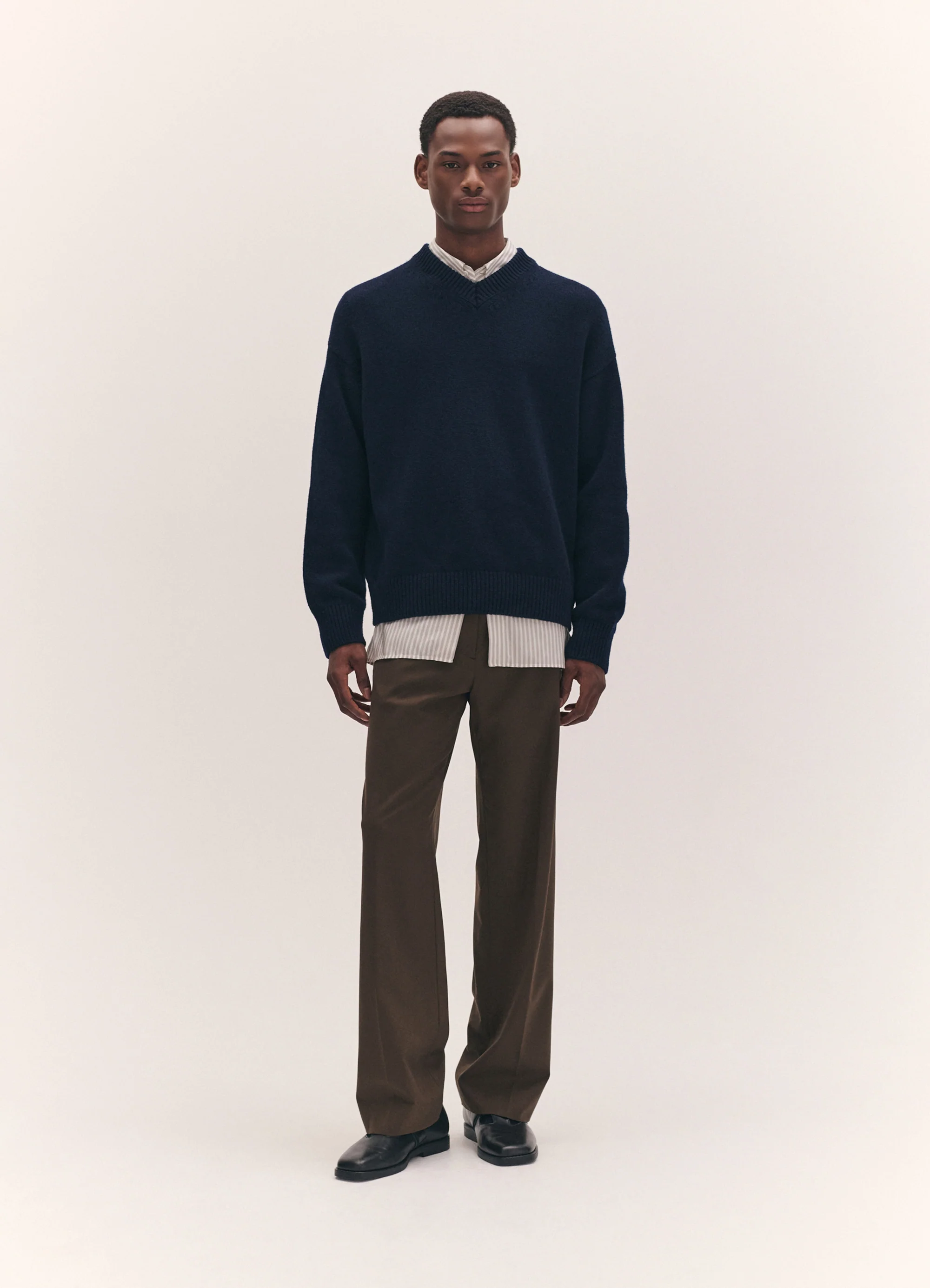 The Balla V-neck is crafted in a chunky 5-gauge weight for a beautifully soft hand-feel and tactile warmth. Subtly draped and gently oversized.