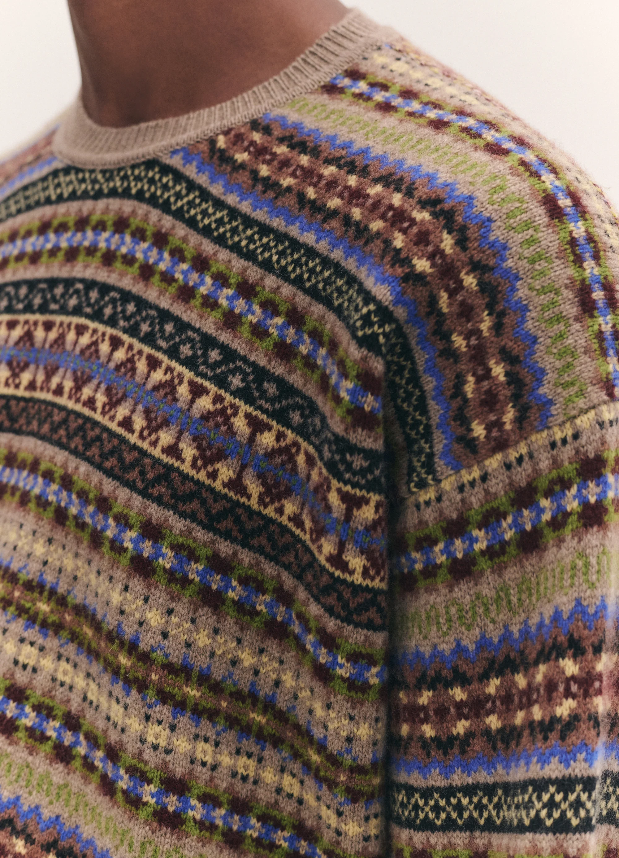 Mens Fairisle Oversized Crewneck in Dark Natural Multi