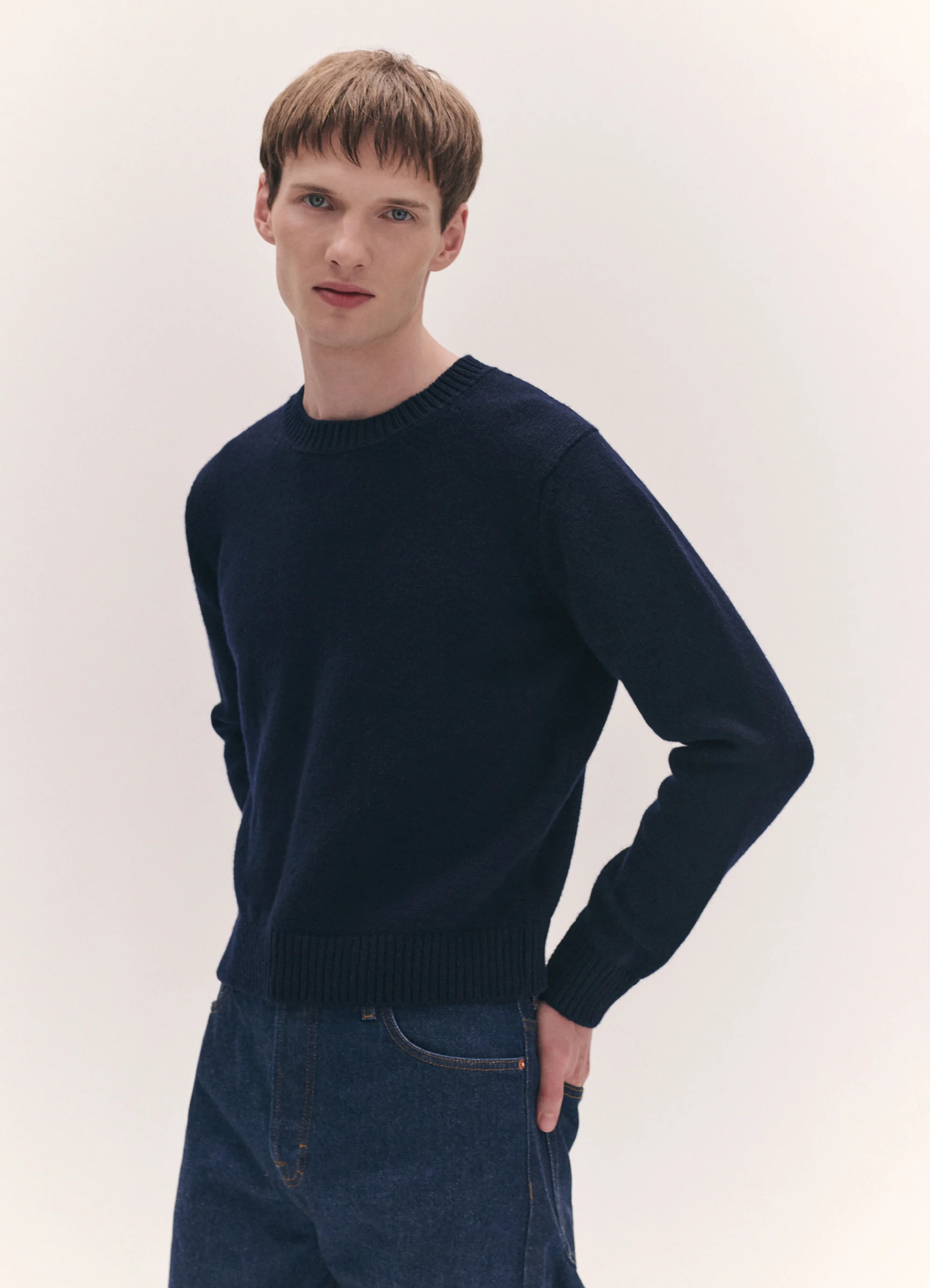 The Rosha Shrunken Crewneck in Navy is crafted in a chunky 5-gauge weight for a beautifully soft hand-feel and tactile warmth. With a subtly shrunken fit with traditional saddle shoulder detail.Ā