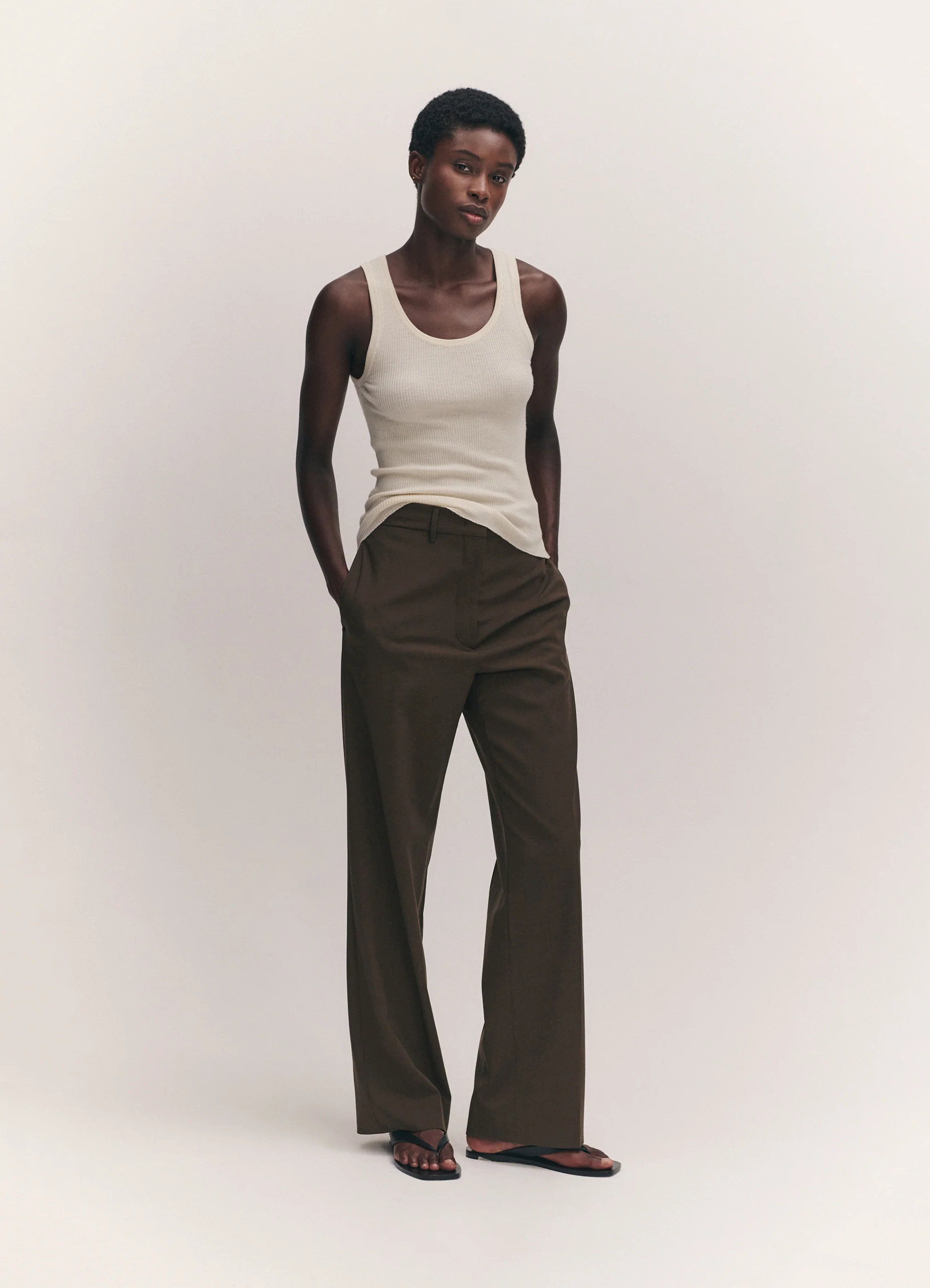 -70%Tierna Fine Rib Merino Tank in Ecruā