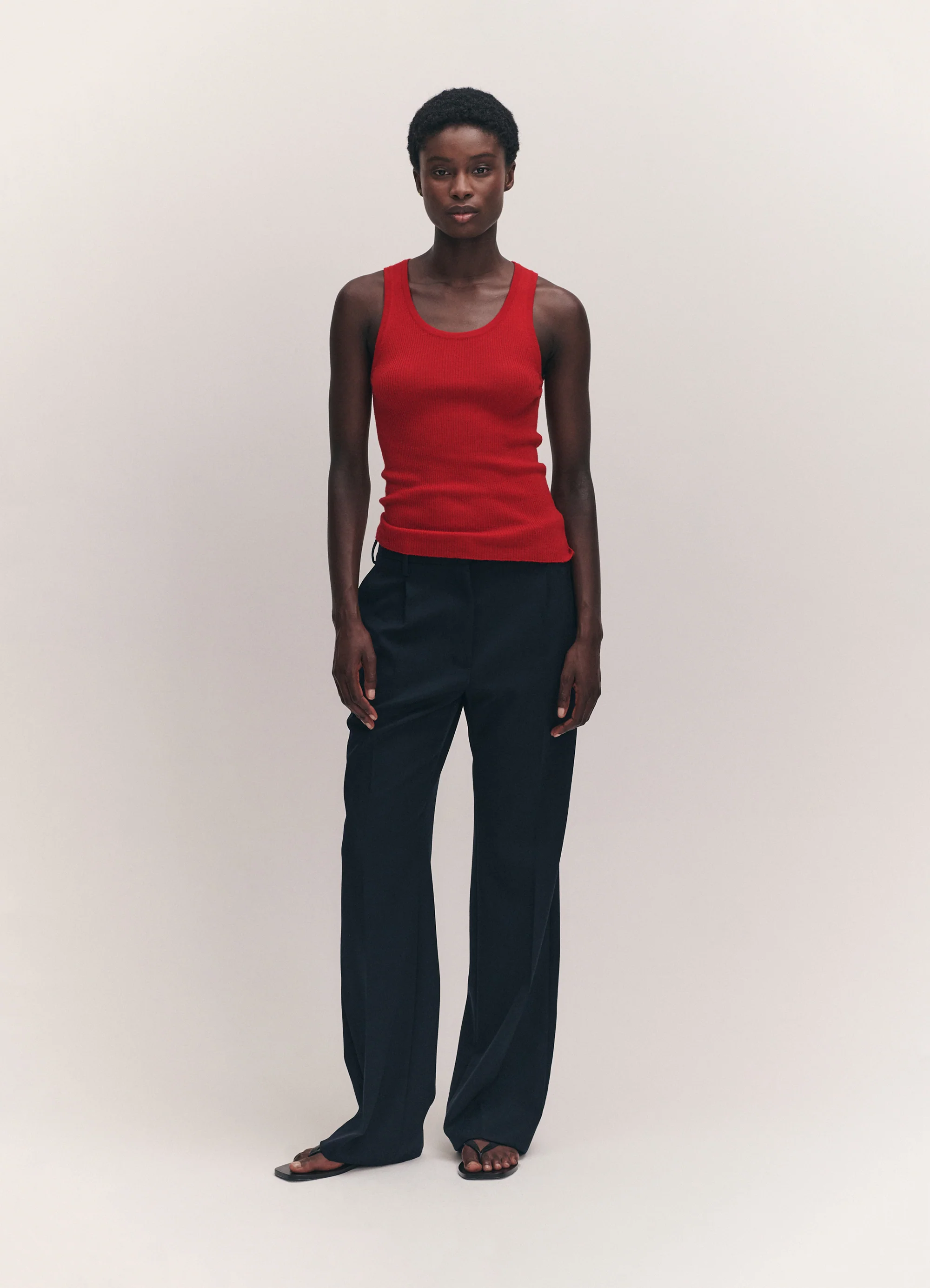 -70%Tierna Fine Rib Merino Tank in Poppy Redā